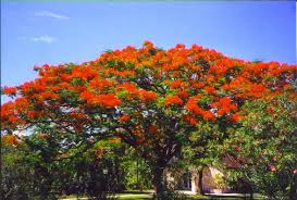 The Royal Poinciana is found in Madagascar’s dry deciduous forests. In the wild it is endangered, but it is widely cultivated elsewhere. In addition to its ornamental value, it is also a useful shade tree in tropical conditions, because it usually grows to a modest height (mostly 5 meters, but it can reach an maximum height of 12 meters) but spreads widely, and its dense foliage provides full shade. In areas with a marked dry season, it sheds its leaves during the drought, but in other areas it is virtually evergreen. Flowers appear in corymbs along and at the ends of branches. Pods are green and flaccid when young and turn dark-brown and woody.